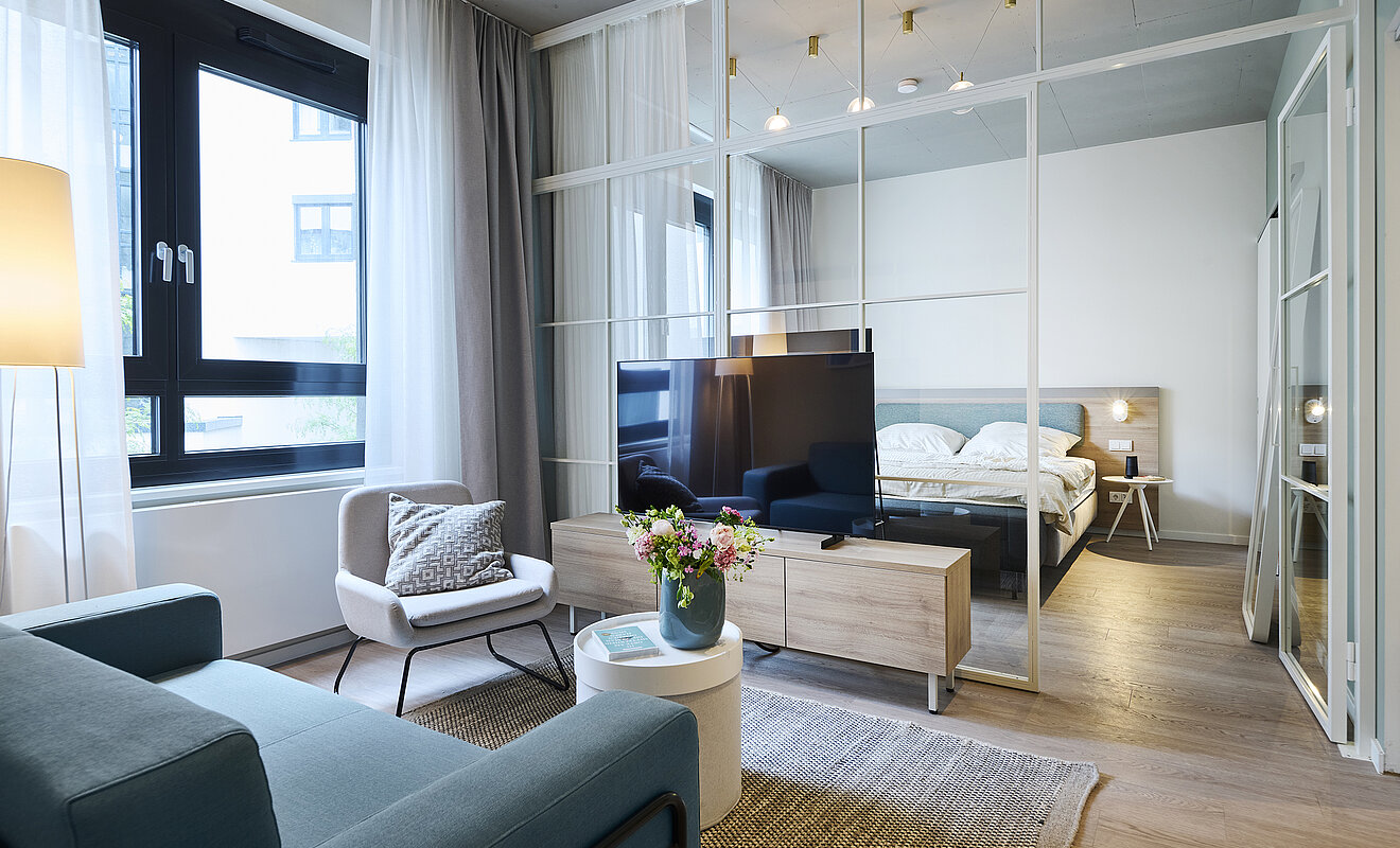 Wohnen, wo Du Dich zu Hause fühlst: Für alle, die mehr wollen, ist das HAVENS LIVING Frankfurt die neue Lieblingsadresse. Das innovative Wohnkonzept in der pulsierenden Finanzmetropole bietet 154 komplett ausgestattete Mikroapartments, die perfekt durch den Co-Working-Space, die großzügigen Gemeinschaftsbereiche mit Gemeinschaftsküche, das Fitnessstudio, die Bar sowie Chill-out-Areas ergänzt werden. TM Ausbau hat die anspruchsvolle Revitalisierung des ehemaligen Verwaltungsgebäudes in nur 14 Monaten umgesetzt. Von der Werk- und Montageplanung über die Baustellenlogistik, Koordinierung des Abbruchs und der einzelnen Gewerke, den Rohbau und die Fassade über die technische Gebäudeausrüstung (TGA) und Haustechnik (HKLS) bis hin zum kompletten Innenausbau war das Leistungspaket breit gefächert. Im Mittelpunkt der energetischen Sanierung stand eine harmonische Konversion der Flächen, die gezielt auf die CO₂-Effizienz des Gebäudes ausgerichtet war.
