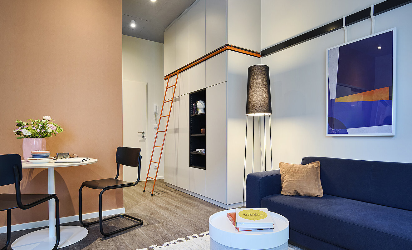 Spannende Oberflächen, Materialien, Farben und Strukturen – so begeistert das HAVENS LIVING Frankfurt mit seinen stylishen Mikroapartments THE COZY, THE STANDARD und THE SPACIOUS sowie vielfältigen Nutzungsbereichen seine Mieter:innen. Das Team von TM Ausbau hat sich um den gesamten Innenausbau mit Wänden, Decken, Böden, Tapeten, Fliesen, Türen, Beschichtungen sowie Putz- und Malerarbeiten gekümmert. Hinzu kamen die Beleuchtung sowie die mobilen Trennwände, die den Besprechungsraum flexibel in drei kleinere Räume teilen. Die Beschichtung der Tiefgarage sowie die professionelle Montage der Decke und des Bodenbelages im Fitnessstudio rundeten das Leistungspaket ab.