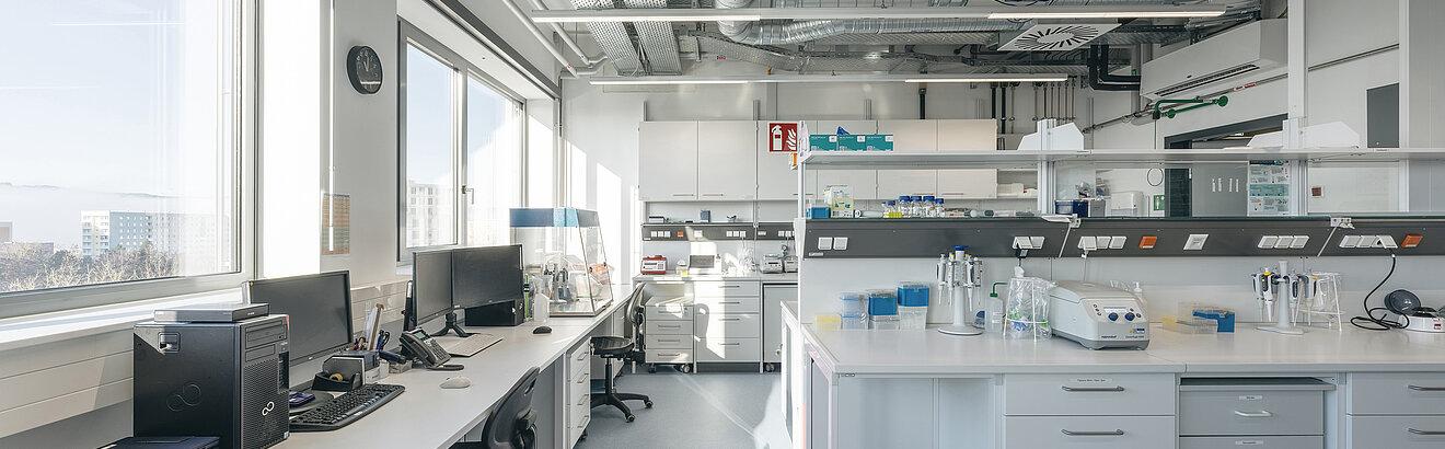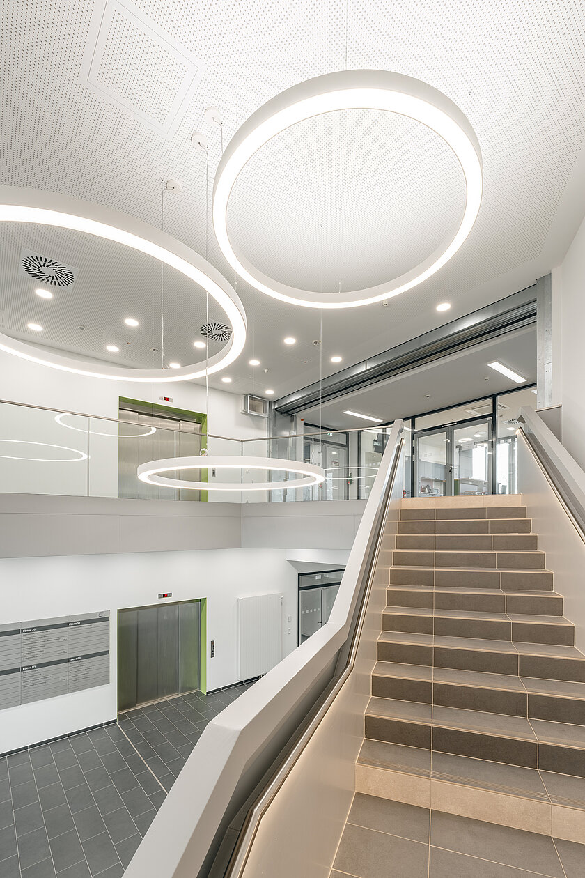 Am Zentrum für translationale Medizin CeTraMed am Universitätsklinikum Jena (UKJ) untersuchen 14 Forschungsgruppen mit lichtbasierten Methoden, wie altersbedingte Erkrankungen, Diabetes und Krebs entstehen. Dabei immer klar das Ziel vor Augen: die Entwicklung neuer Diagnose- und Behandlungsmöglichkeiten. So verbindet das innovative Forschungsgebäude die Kompetenzen des UKJ, des Leibniz-Instituts für Photonische Technologien (IPHT) und der Technischen Universität Ilmenau. TM Ausbau hat den anspruchsvollen Komplettbau realisiert, der die komplexen Anforderungen eines S2-klassifizierten Forschungsumfeldes erfüllt. Funktionalität, Sicherheit und Detailtreue standen beim Innenausbau auf sieben Etagen ebenso im Fokus wie das minimalistische, zeitgemäße Designkonzept für konzentriertes Arbeiten und interdisziplinären Austausch.
