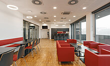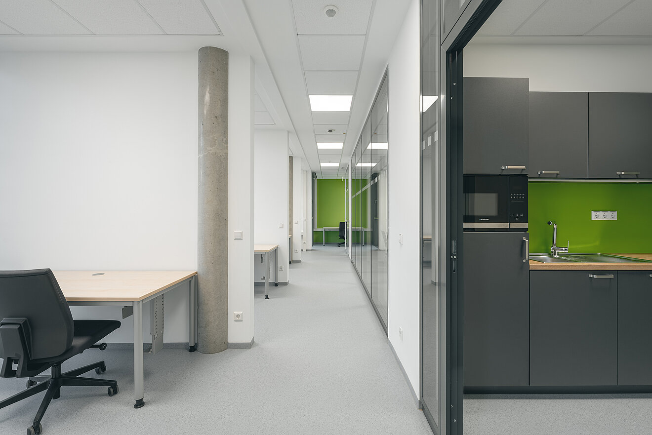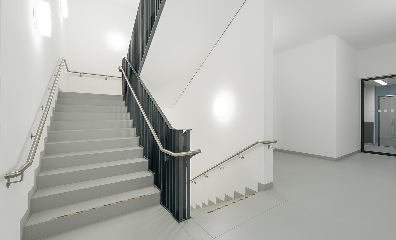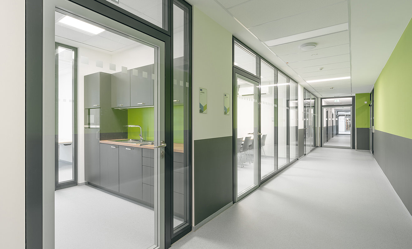 Ergänzend zur funktionalen Architektur überzeugt das CeTraMed mit seinen durchdachten Oberflächen und seiner praxisgerechten Gestaltung. TM Ausbau übernahm die Bodenaufbauten, Bodenbeläge und die Verlegung des Parketts, Maler-, Fliesen- und Oberflächenarbeiten sowie individuelle Tischlerarbeiten für den Möbelbau mit Sitzbänken, Küchen und Durchreichen. Das Ergebnis? Ein sicheres und langlebiges Forschungszentrum, dessen Details perfekt aufeinander abgestimmt sind. Viele Qualitäten bleiben dabei bewusst im Hintergrund – und zeigen sich genau dort, wo sie gebraucht werden: im harmonischen Zusammenspiel von Raum, Technik und Abläufen.