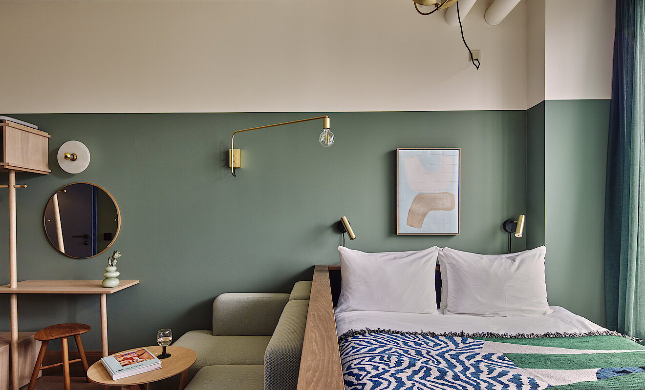 Willkommen im Wunderland: Das designorientierte Aparthotel WunderLocke im aufstrebenden Münchner Stadtteil Obersendling bringt ein einzigartiges Hospitality-Konzept in die bayerische Landeshauptstadt. Von der Penthouse-Suite zum Co-Working-Space, vom À-la-carte-Restaurant bis zum Mural Farmhouse-Dachgarten mit eigener Farm und Bar, der im Frühjahr 2023 eröffnet wurde – das Konzept ist simpel: reisen, ohne das Hotel zu verlassen. Durch die Kombination aus Grün-, Blau- und Naturtönen mit Beton und schwarzem Metall entstand eine Oase im industriellen Look. Den anspruchsvollen Innenausbau inklusive Interior-Gesamtpaket hat TM Ausbau übernommen.