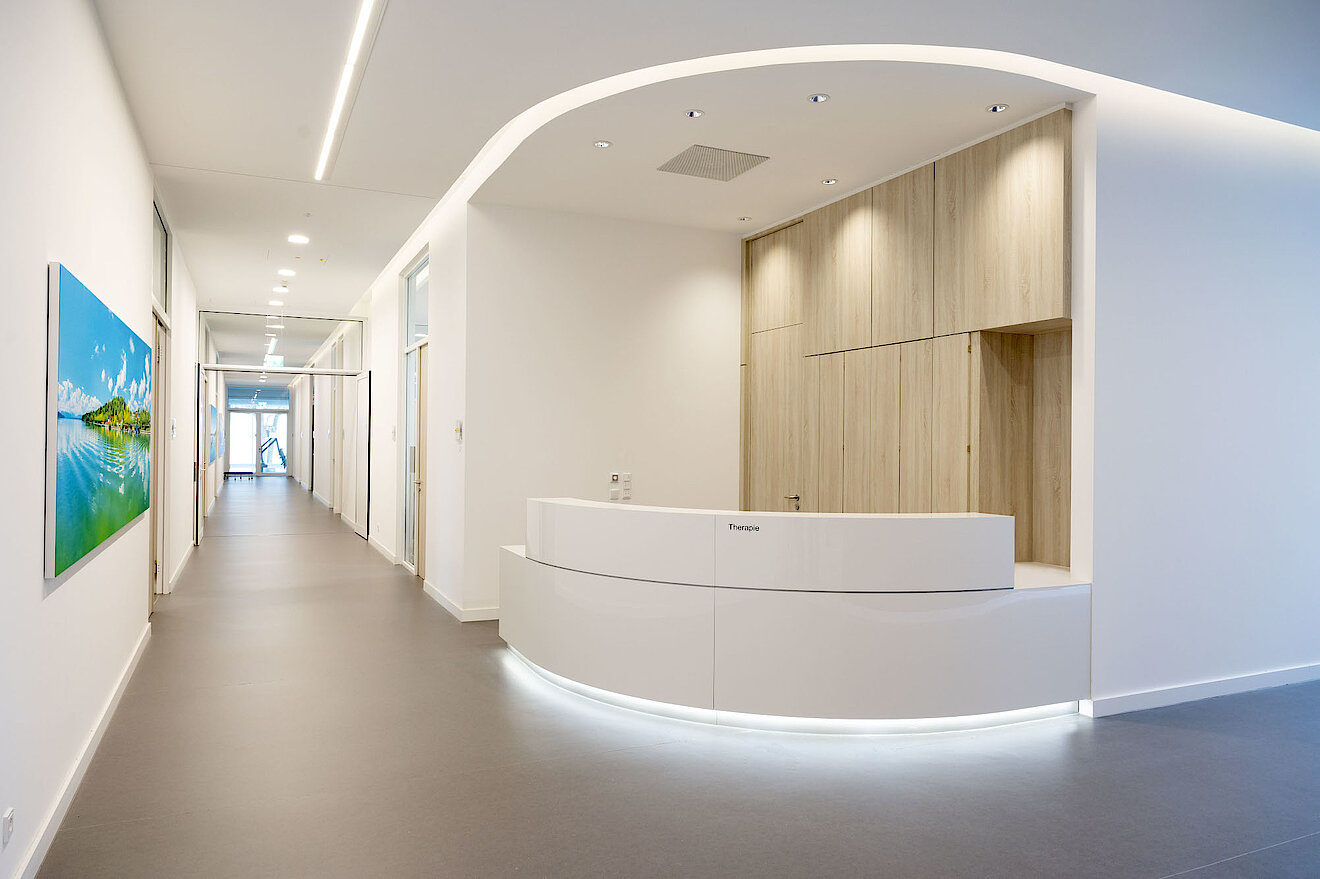 Damit sich die Patient:innen in der Reha-Klinik in Oberbayern wohlfühlen, hat TM Ausbau beim hochwertigen Innenausbau alle Leistungen nach Kundenwunsch umgesetzt: So haben wir im Krankenhaus unter anderem die Akustikdecken in verschiedenen Ausführungen, Akustikdeckenbeschichtungen, Wände und Decken aus Gipskarton sowie rund 1.900 m² Außendecken realisiert. Im Bewegungsbad für die Wassertherapie hat unser Team eine Decke mit Akustiklochung montiert. Große Fensterflächen lassen viel Licht ins Gebäude, sodass das Benedictus Krankenhaus Feldafing nach dem Abschluss der umfangreichen Arbeiten im Bereich Komplettbau und Innenausbau mit einer besonders einladenden Atmosphäre punkten kann. Ganz nahtlos fügen sich in das transparente und absolut stimmige Architekturkonzept die hellen Holztüren mit und ohne Brandschutz, Schiebetüren mit Elektroantrieb, Glaswände, ein Brandschutzvorhang, eine mobile Trennwand und ein Strahlenschutzfenster ein.