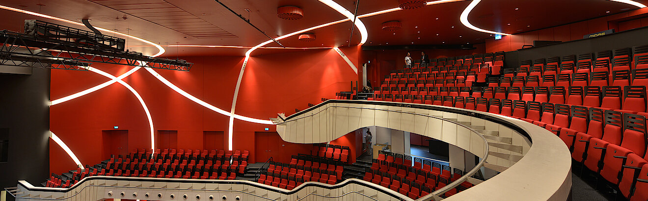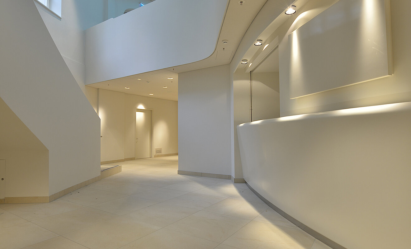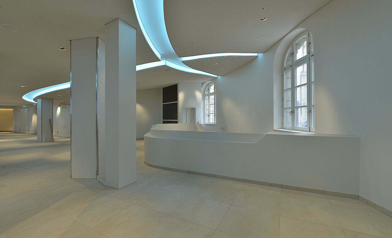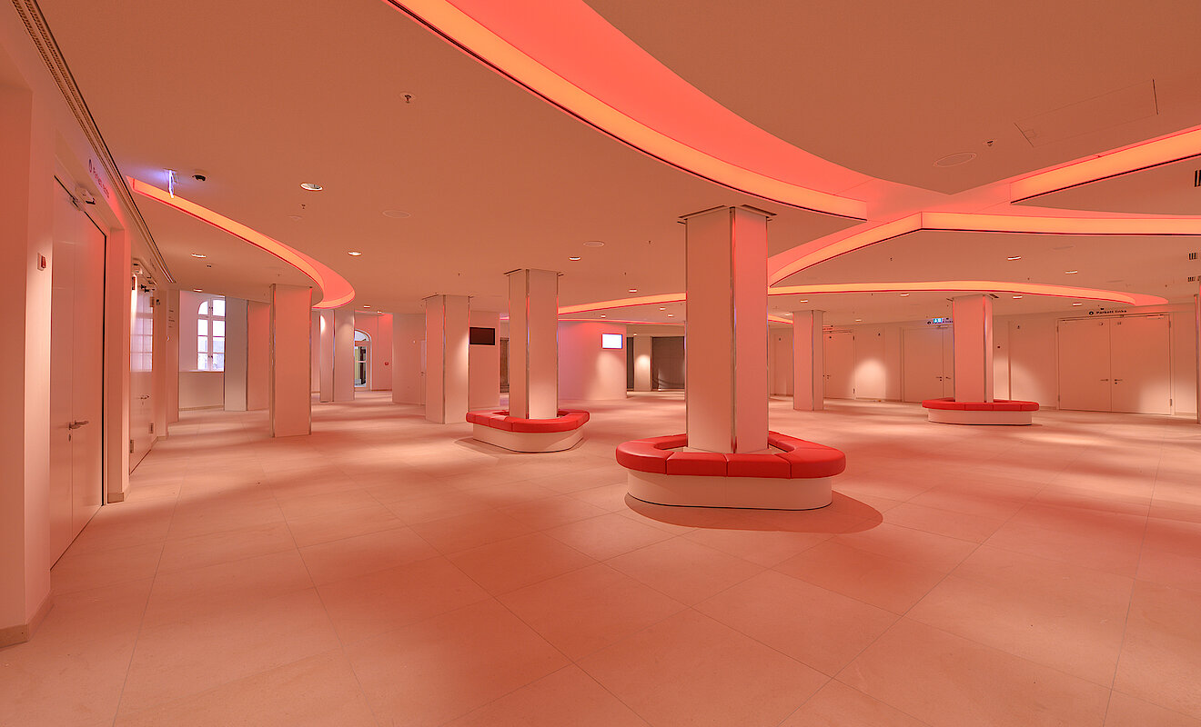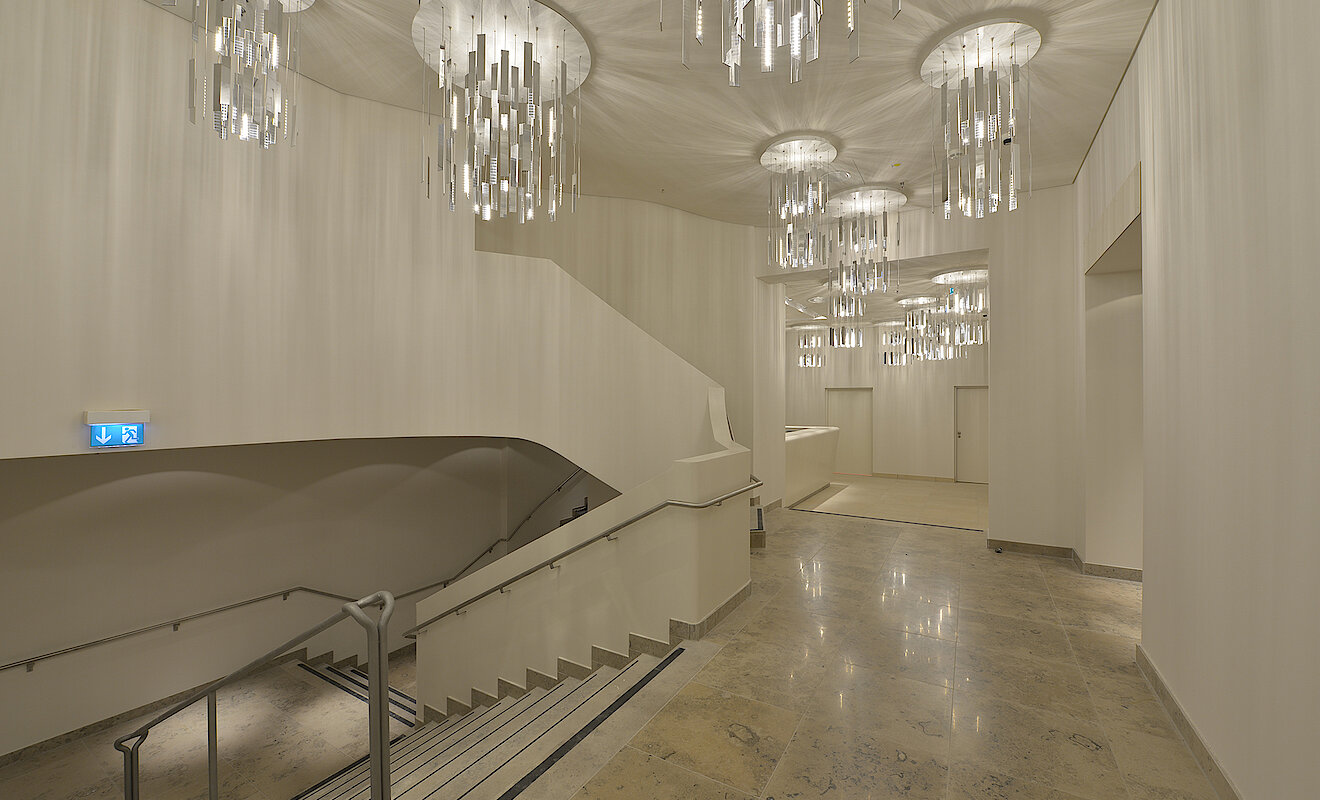 Formen, Farben und Gestaltung bilden im Deutschen Theater eine stimmige Einheit und stellen einen spannenden Kontrast zur Fassade des Gebäudes dar. Neben den sichtbaren Maßnahmen wurden auch technisch anspruchsvolle Arbeiten im Innenausbau wie in die Decken integrierte Lichtkanäle mit höchster Präzision umgesetzt. So zeigt sich das Bauwerk heute wieder als echter Palast im Herzen Münchens.