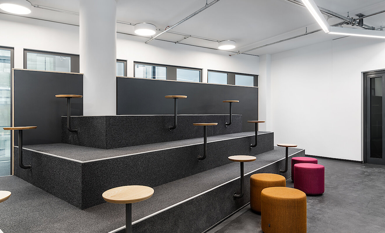 Moderne Arbeitswelt trifft Wissenschaft und Forschung: Das ist das Leitmotiv der neuen Offices im Galileo. Die Neue Mitte des Campus der TU München in Garching vereint Leben, Arbeiten und Wohnen in einem hybriden Gebäudekomplex. Der Grund- und Mieterausbau der Büroflächen lag dabei in den Händen von TM Ausbau. Die offen gestaltete Bürolandschaft zeichnet sich durch Flexibilität und Individualität aus: Ob Team- oder Büroraum, ob Service- oder Meetingpoints, die Ausbau-Spezialist:innen von TM Ausbau realisierten jeden Wunsch der Mietenden.