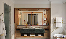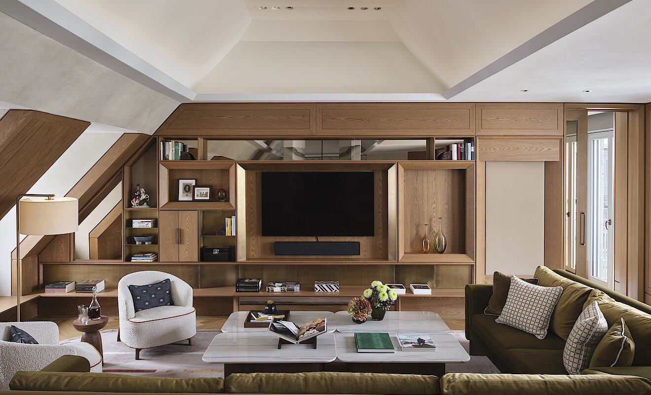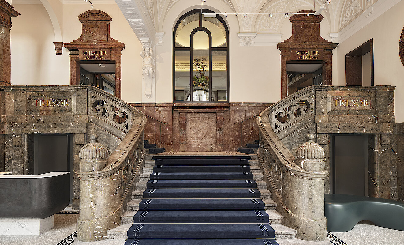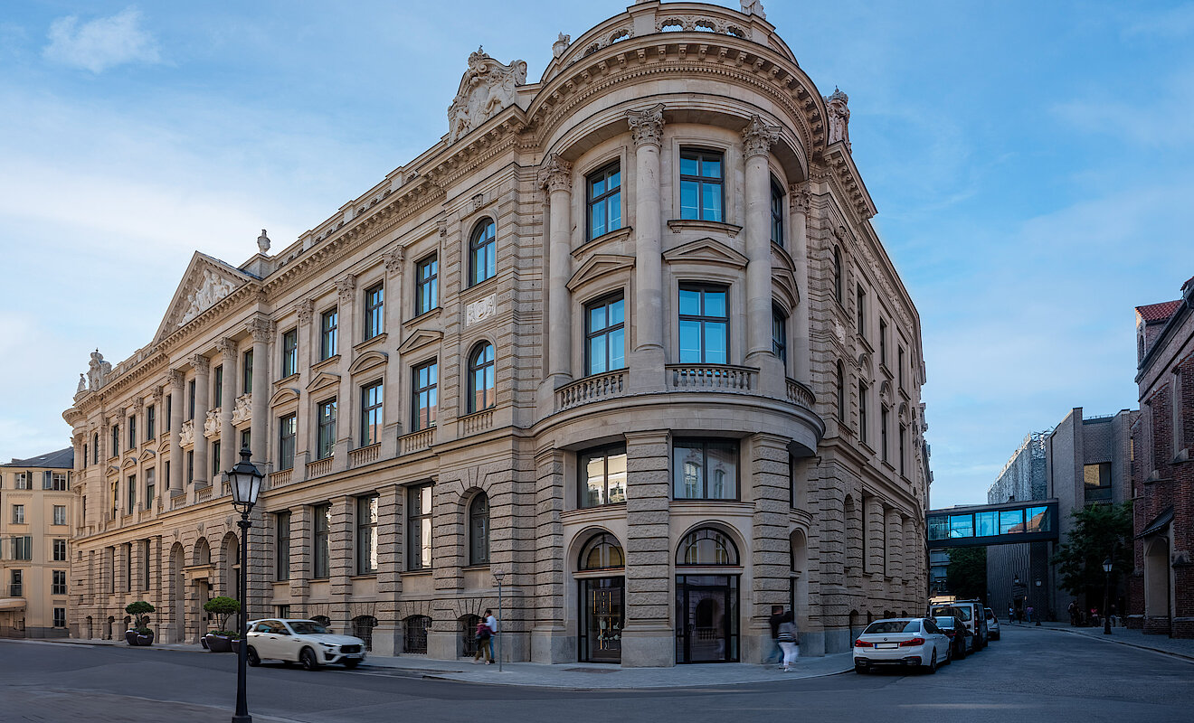 Ein Luxushotel, das das einzigartige Lebensgefühl Münchens in jedem Detail einfängt: Das erste deutsche Hotel der Rosewood-Gruppe – das Rosewood Munich – zieht seine Gäste mit historischem Charme und purer Eleganz in den Bann. Das 5-Sterne-Hotel befindet sich in zwei denkmalgeschützten, epochalen Gebäuden – dem ehemaligen Hauptsitz der Bayerischen Staatsbank und der angrenzenden Adelsresidenz Palais Neuhaus-Preysing. TM Ausbau hat den sehr anspruchsvollen Innenausbau des Luxushotels inklusive Türen und Schreinerarbeiten realisiert. Hinter der malerischen Fassade des Rosewood Munich verschmelzen die prunkvollen Gewölbedecken und Fresken mit dem einladenden Interior zu einem stimmigen Gesamtbild. Dies wird unterstrichen durch maßgefertigte Möbel, kuratierte Kunstwerke, zeichnerische Momentaufnahmen des Lebens in München, lebendige Farben sowie verschiedene Materialien wie Samt, Tweed und Leder – die Grüntöne der Polstermöbel in der Lobby zum Beispiel sind eine Hommage an die traditionelle Lodenkleidung in Bayern.