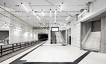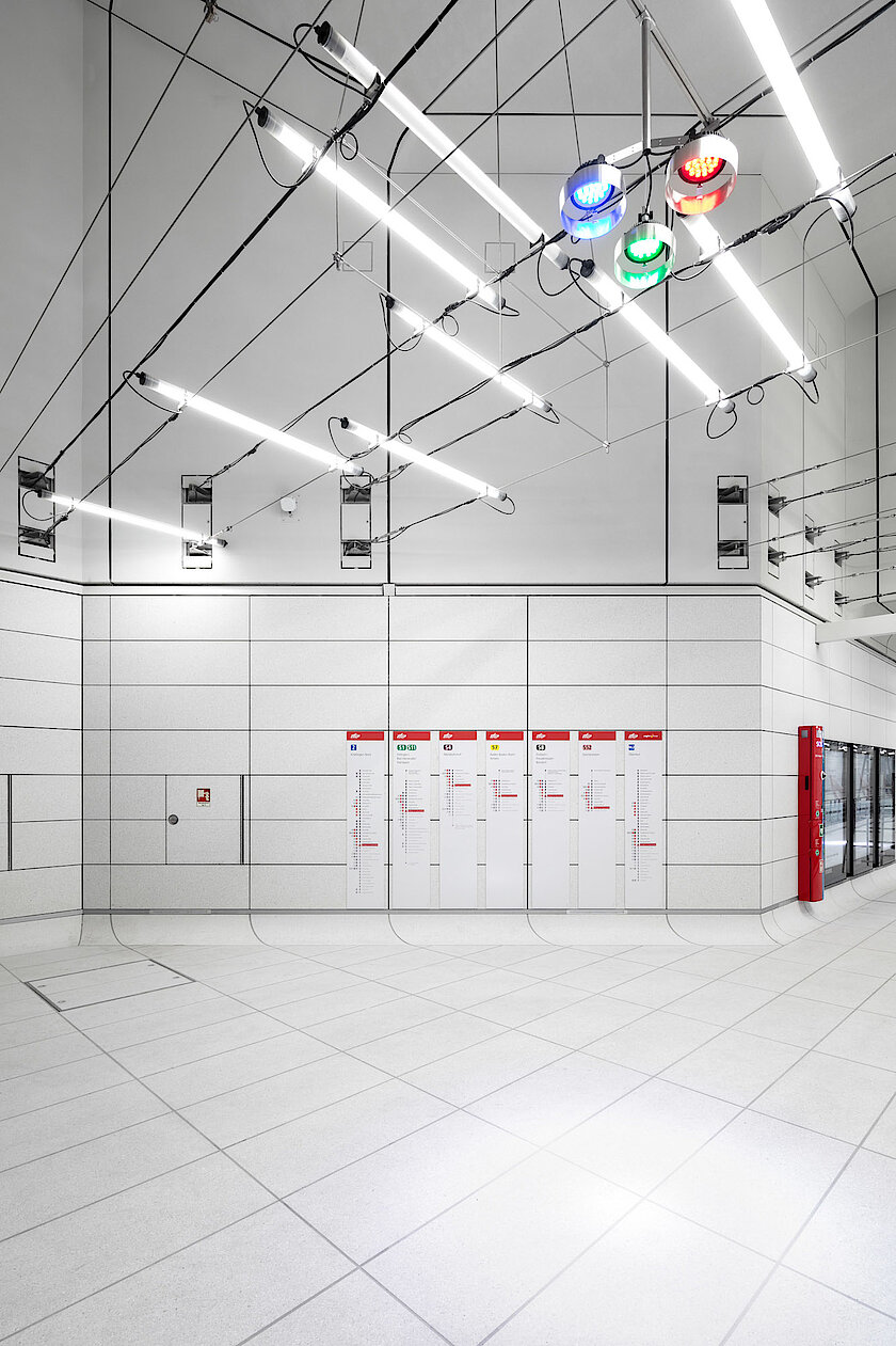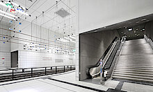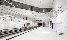 Die Montage der Bahnsteigdecken zuzüglich der Abhangdecken in den Zwischenebenen und Bahnsteigen mit Beplankungen aus Blähglasgranulatplatten und Akustikbeschichtungen sowie die Bahnsteigvorsatzschalen mit Beplankung aus Zementplatten und Akustikbeschichtungen lag in den Händen von TM Ausbau. Ein bauliches Highlight ist, dass alle Konstruktionen Sonderanfertigungen sind. Hinzu kamen die Bodenbeschichtungen im Bereich der Aufzugsunterfahrten, Sonderrevisionsklappen für die Lichtgespinste (Fahrdrahtabhängungen) und weitere Sonderkonstruktionen.
