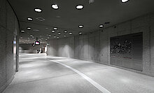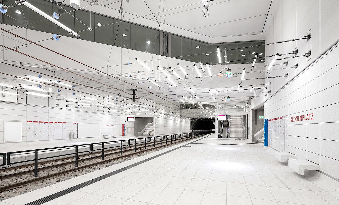 Im Zuge des Ausbaus des T-förmigen Tunnels auf der 3,4 Kilometer langen Strecke übernahm TM Ausbau zusätzlich die gesamte Werk- und Montageplanung inklusive der statischen Berechnungen. An den Bahnsteigen haben die Bauexpert:innen bei den Konstruktionen eine Heißbemessung vorgenommen. Diese erfolgte für eine Temperaturbeanspruchung der tragenden Konstruktionen bis 800 Grad Celsius über einen Zeitraum von 30 Minuten bei gleichzeitigen Windlasten von 50 kg/m².