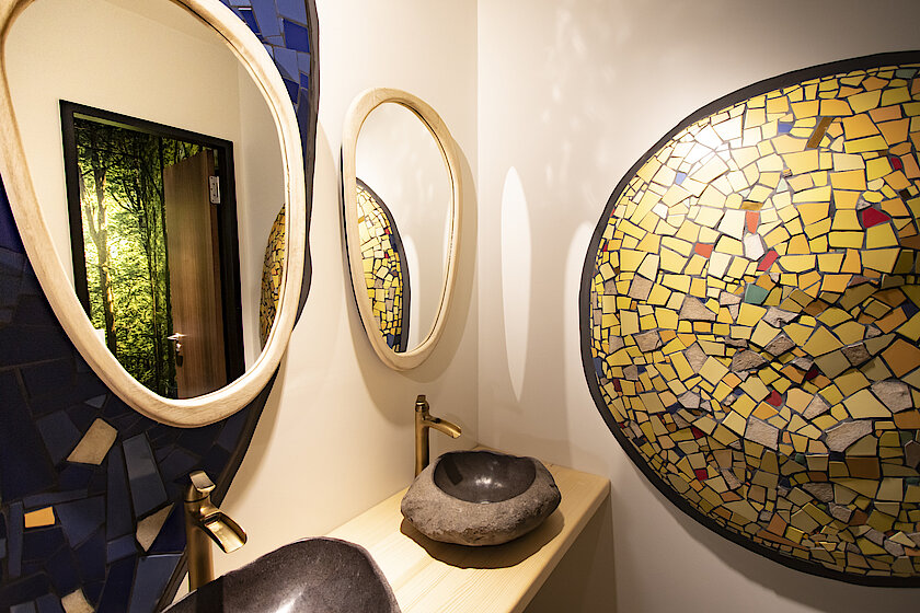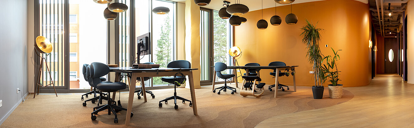 Farbexplosion beim Mieterausbau: Im neuen Workspace der Timmermann Group in München sorgen leuchtende Erdtöne, aufregende Mosaike im Hundertwasser-Stil, organische Formen, natürliche Materialien und offene Decken im Industrial Style für den ganz besonderen Effekt. Das Change-Unternehmen kann das Büro so auch als Showroom nutzen, da Timmermann auch New-Work-Architektur und -Design für seine Kund:innen gestaltet. TM Ausbau hat als Generalunternehmer für den Innenausbau die architektonische Vision des Kunden Wirklichkeit werden lassen. Vom TGA-Konzept über Böden, runde Wände und Mauern bis hin zur Haustechnik und Fassade stammt alles von den Bauexpert:innen. Jeder Raum erzählt mit einem individuellen Motto wie „Star Trek“ und „Princess“ seine eigene Geschichte. Das Activity Based Working-Konzept setzt sich unter anderem aus Open Spaces, Doppelbüros, Multifunktions-, Projekt- und Besprechungsräumen, einer „Arena“ sowie mehreren Think Tanks zusammen. Zusätzlich können sich die Mitarbeitenden im „Raum-Raum“ sportlich fit halten, meditieren oder auf einem ausklappbaren Bett entspannen.