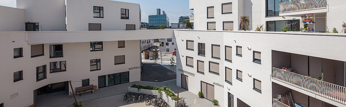 Strahlend schön und funktionell: So präsentiert sich die genossenschaftliche Wohnanlage wagnisART im Münchner Norden. Mit fünf Baukörpern bildet das Projekt ein räumlich spannendes Stadtquartier, das durch seine Gestaltung die nachbarliche Gemeinschaft fördert. Sofort ins Auge fallen die zahlreichen Balkone und Dachterrassen: Sie verbinden die nach den fünf Kontinenten benannten Häuser in Form von Brücken.
